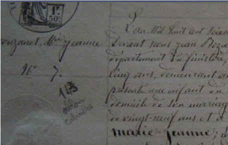 Jean Marie étant le cadet d’une fratrie de 6 enfants, et pas de propriété à exploiter n’a pas eu d’autre choix que de devenir valet de ferme… Le 21/09/1873, il se marie avec Marie Anne Le Gall. Elle est née à Kerlestrec en Briec le 18/06/1847 Elle non plus, bien que l’aînée de 4 filles, n’hérite pas d’une ferme puisque ses parents sont également aides cultivateurs…