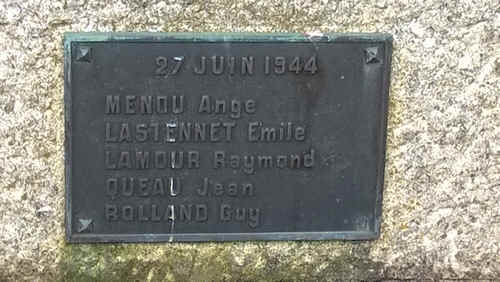 Le 27 juin 1944, un sergent téléphoniste allemand répare des fils téléphoniques en bordure de la route de Briec à Châteaulin quand il remarque des traces fraîches de chaussure dans un champ. En suivant cette piste, il aperçoit à la jumelle un homme armé d'une mitraillette. Avec deux autres hommes, ils abattent le maquisard en faction et ouvrant brusquement la porte de la ferme du Guellen lancent une grenade et tirent au jugé avant de s'enfuir. Plus tard, avec d'autres allemands dont un officier, ils retournent sur les lieux où ils découvrent cinq corps qu'ils font enterrer avant d'incendier la ferme. Les cinq victimes furent : Jean Pierre QUEAU, 20 ans, né le 14/06/1924 à Plouzané 29 Ange Francis MENOU, 29 ans, né le 09/11/1914 à Lannion 22 Emile René LASTENNET, 25 ans, Inspecteur de police, né le 23/06/1919 à Saint Pierre Quilbignon 29 Raymond LAMOUR, 19 ans, étudiant, né le 03/10/1924 à Paris 75 Guy Nonna ROLLAND, 18 ans, employé de bureau, né le 29/08/1925 à Penmarch 29