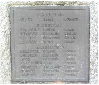 4 membres de la section Pellen de la FFI de Briec sont tués après un dur combat avec une colonne allemande de voitures se dirigeant vers Quimper.
